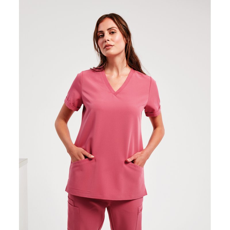 En arbetstunika i ventilerande fyrvägsstretch för god rörlighet och comfort hela dagen. Med V-ringning, två framfickor och sprund i sidorna. Tillverkad i skrynkelfritt material.