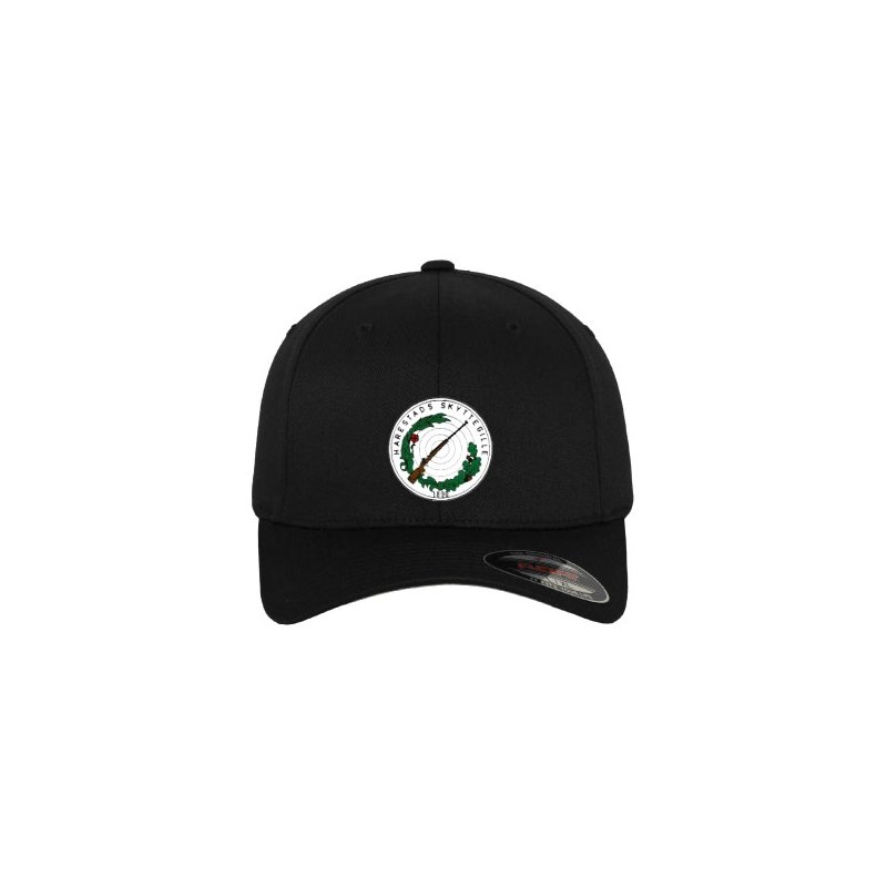 Svart Flexfitkeps med Harestads skytteförening mitt på frontpanelen. Resår gör att kepsen sitter perfekt, täckt nacke.