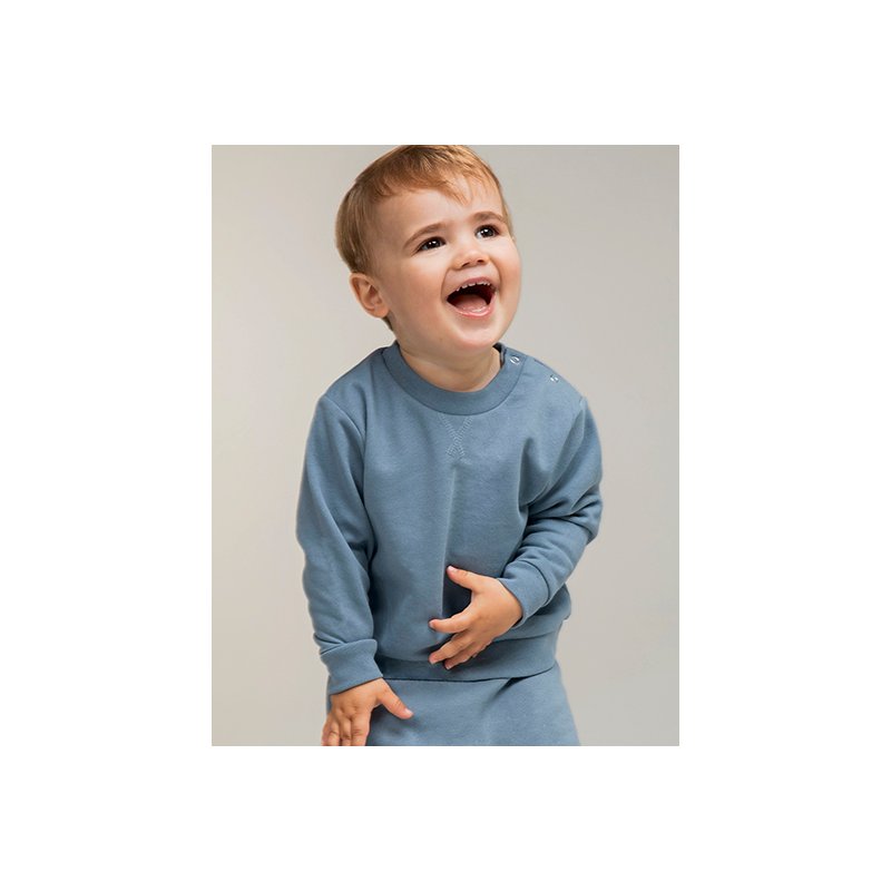 En mjuk och skön sweatshirt i återvunnet material till de minsta barnen. Tröjan har insida i kammad fleece, ribbstickning vid hals och ärmslut samt en V-söm vid halsringningen som fin detalj. Tryckknappar på axeln upp till storlek 24/36 månader.