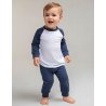 Skön barnpyjamas i baseballstil. Tröjan har raglanärm och muddar i ärmslut. Byxorna har elastisk midja och muddar i benslut. Tillverkad i mjuk bomullstrikå.
